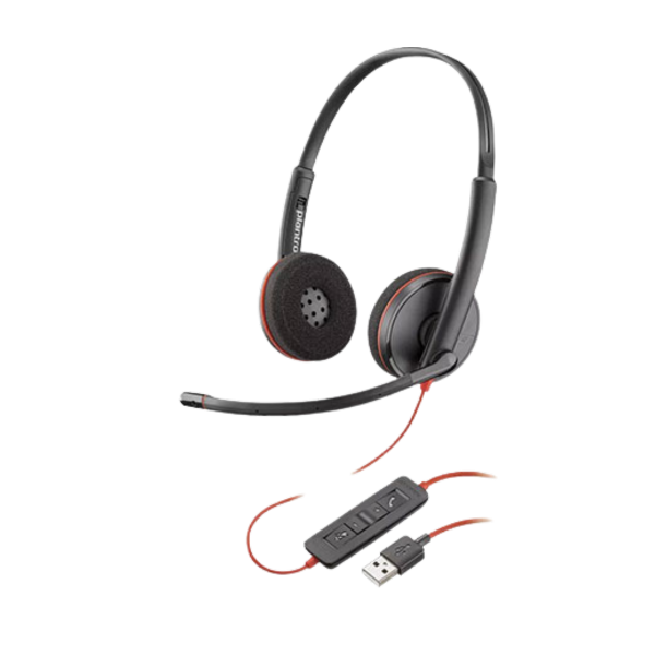 אוזניות חוטיות ל-2 אוזניים עם מיקרופון Poly Blackwire C3220 USB-A