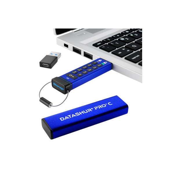 ה-iStorage datAshur PRO + C הוא דיסק און קי מוצפן USB 3.2 (Gen 1) Type-C הראשון והיחיד בעולם עם הסמכת FIPS 140-3 רמה 3, המספק הגנה ברמה צבאית לנתונים שלך. כונן זה משתמש בהגנה מבוססת PIN והצפנת חומרה AES-XTS 256-bit, ומספק פתרון מאובטח, נוח ונגיש לאחסון נתונים רגישים. עם קיבולות משתנות החל מ-32GB ועד 512GB, datAshur PRO + C מציע עמידות גבוהה, מהירות העברה של USB 3.2, ומתאם כלול מ-Type-C ל-Type-A, כך שתוכל להשתמש בו בקלות על מגוון מכשירים. אבטחה מעולה, נוחות שימוש, ויכולת גיבוי מהירה של נתונים – כל זה בכונן אחד.