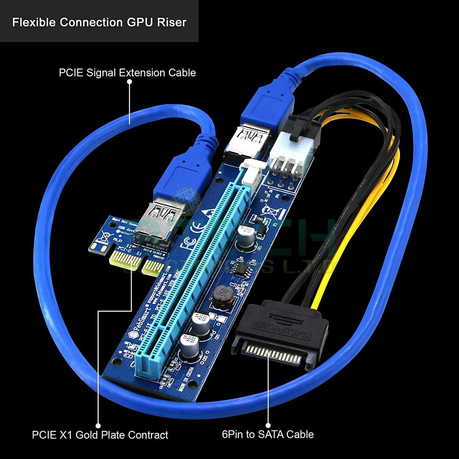 PCI-E Riser X1 to X16 60cm USB3 6Pin Power גרסה חדשה 009s