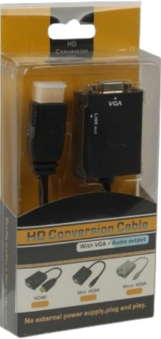 ממיר את האות הדיגיטלי (HDMI) לאות אנלוגי (VGA ואודיו סטריאופוני) ללא צורך במתח חיצוני.