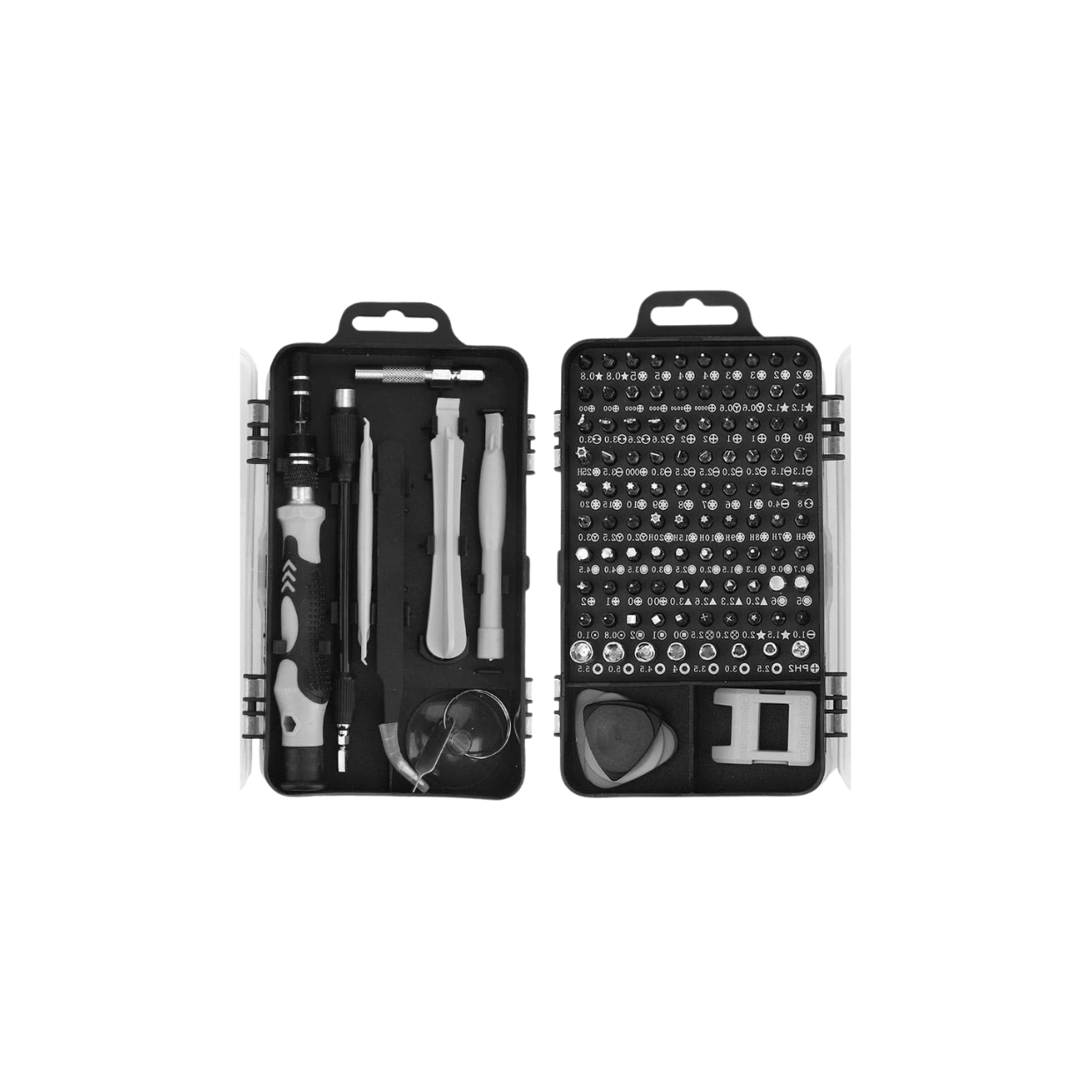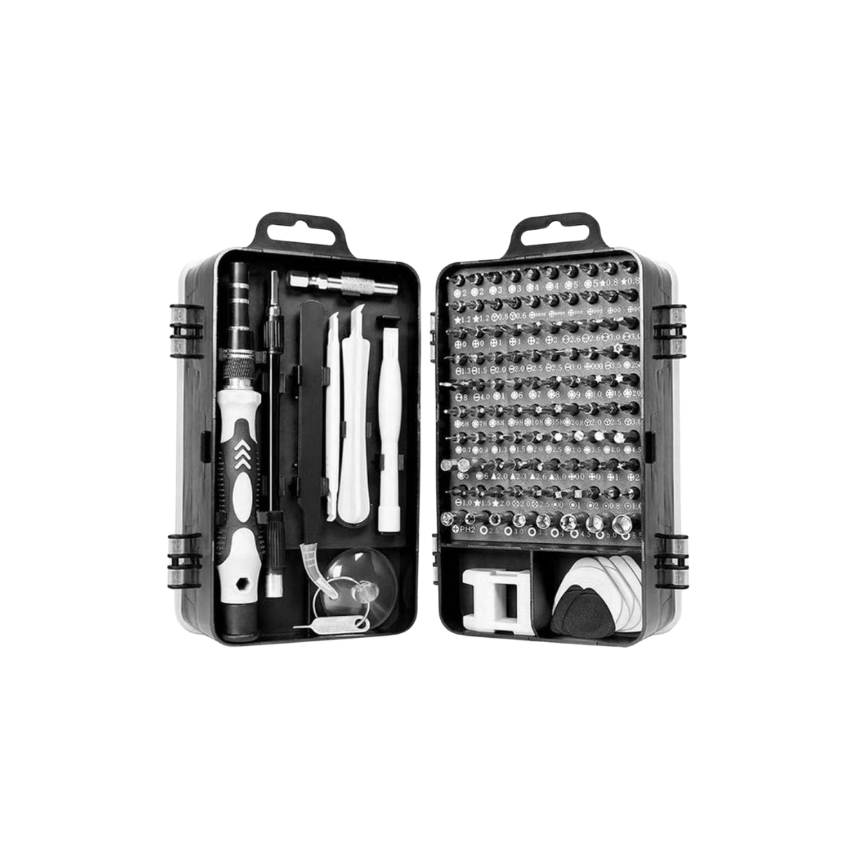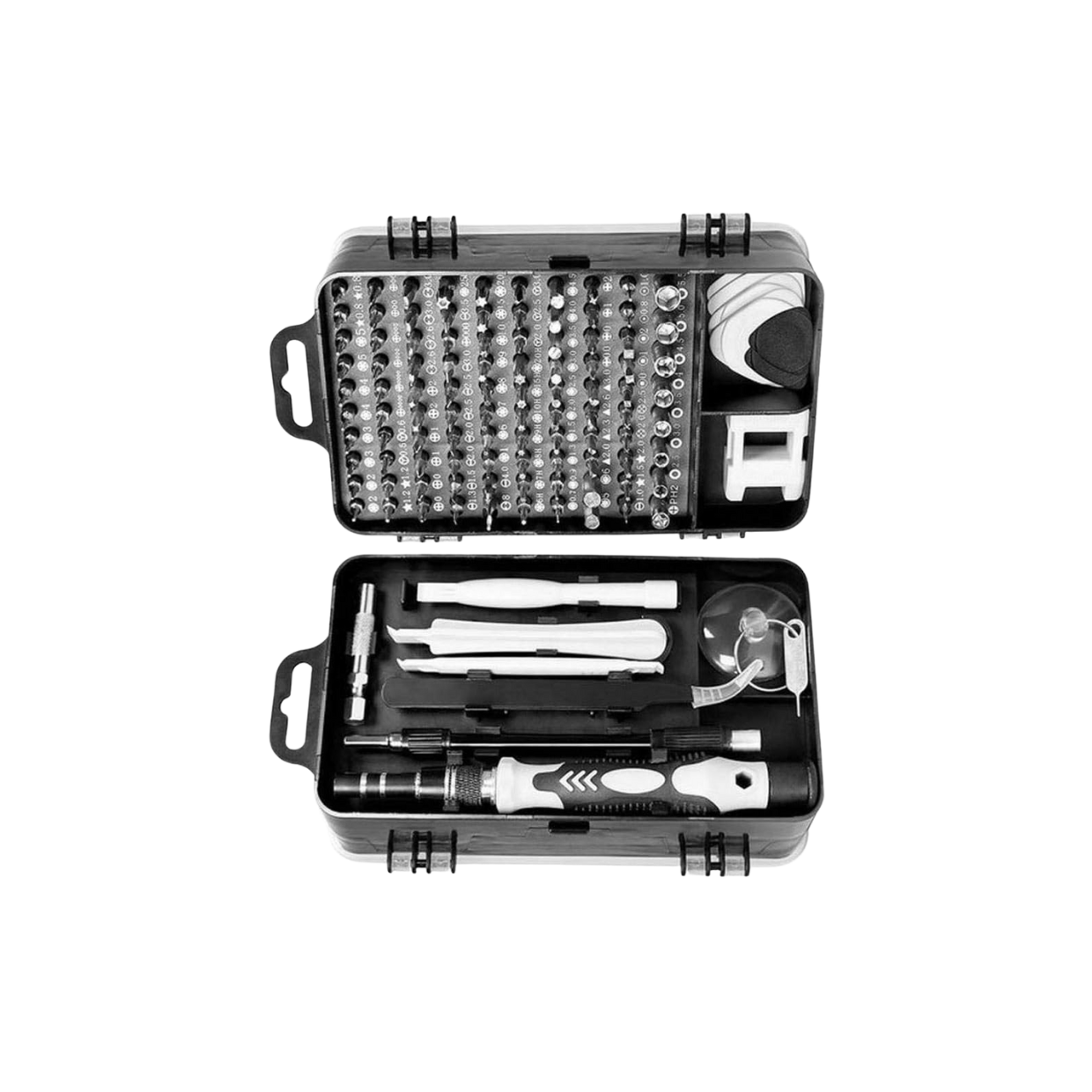 סט מברגים מקצועי המיועד לתיקון טלפונים, שעונים וגאדג'טים נוספים. הסט כולל 98 ביטים מדויקים ו-17 חלקים נוספים לשימוש רב-תכליתי. מתאים לעבודות תיקון עדינות ומורכבות עם עיצוב קומפקטי ונוח. מגיע בצבע שחור אלגנטי, ומספק פתרון מושלם לתחזוקה ותיקון של מכשירים אלקטרוניים קטנים.