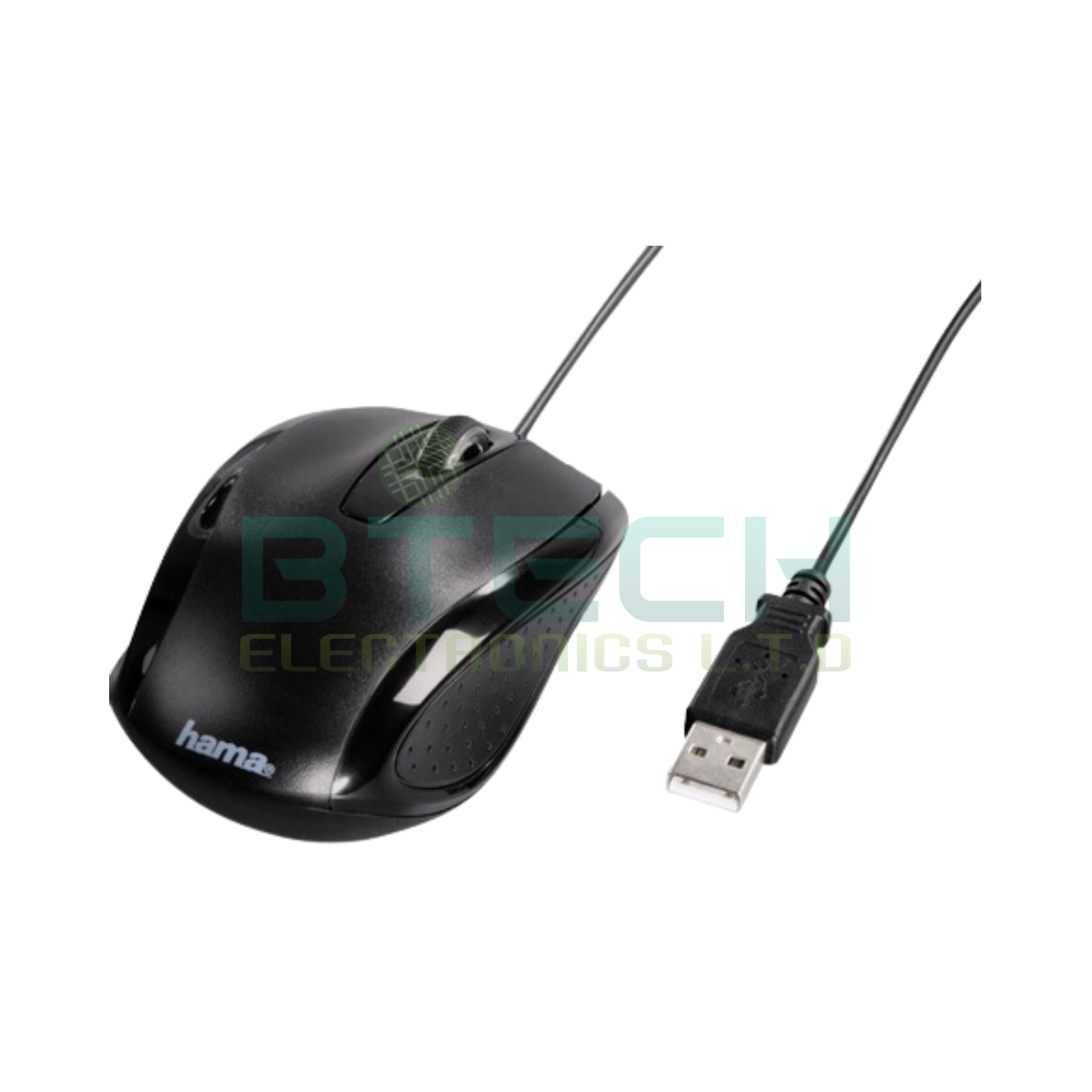 עכבר חוטי בצבע שחור HAMA פשוט 134914 חיישן אופטי 3 לחצנים אופטיים